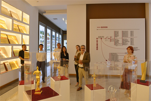 來訪期間,菲祖利先生一行四人先后參觀了昌大建科鋼筋加工、鋼結(jié)構(gòu)以及預(yù)制構(gòu)件車間,第三裝飾幕墻公司門窗加工車間,參觀了集團公司企業(yè)展廳、建筑史館。